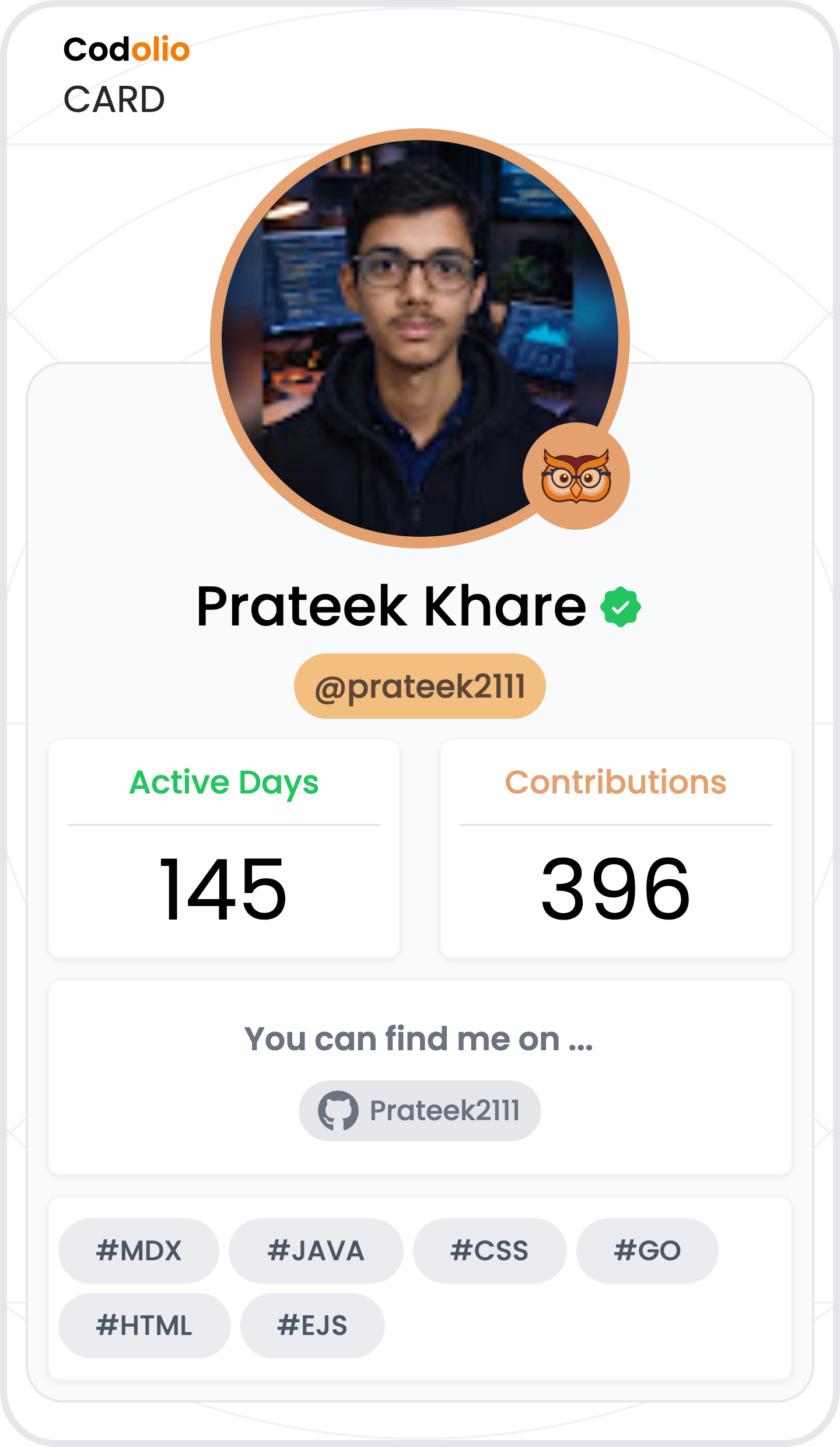 My coding profile and statistics from Codolio, showcasing my daily activity and contributions to the developer community.
